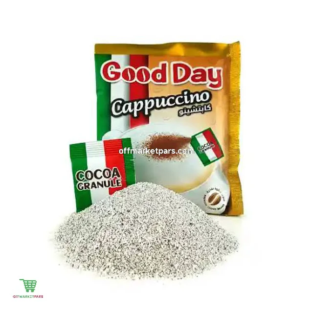 کاپوچینو گود دی ساشه ۲۵ گرمی، پودر کاپوچینوی آماده با طعم غنی و کیفیت بالا، مناسب برای تهیه نوشیدنی ای خوشمزه و سریع. هر ساشه ۲۵ گرمی راحت و سریع حل میشود و تجربهای لذیذ از قهوه را در هر زمان برای شما فراهم میکند.