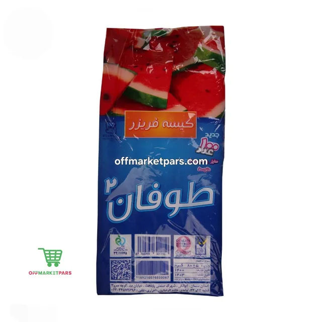 کیسه فریزر طوفان سایز ۳۰ در ۲۰ سانتیمتر، بسته ۱۰۰ عددی، مناسب برای نگهداری مواد غذایی به صورت بهداشتی و مقاوم در برابر رطوبت و سرما، سبک و شفاف، ایدهآل برای فریز کردن و محافظت از طعم و تازگی مواد. کیفیت بالا و کاربردی در منازل و فروشگاهها.